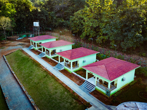 Khandadhar Nature Camp site has 10 luxurious AC cottages - 6 (Nature Camp Cottages) on a hillock facing towards the Khandadhar waterfall and 4 (Eco-Cottage) inside the Eco Park.